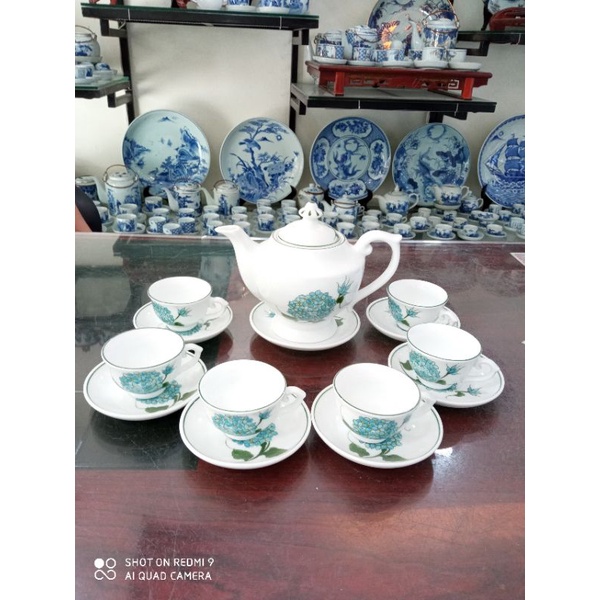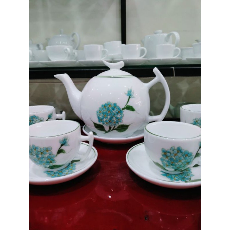 Bộ ấm chén Minh Long vẽ tay Cẩm Tú Cầu free ship